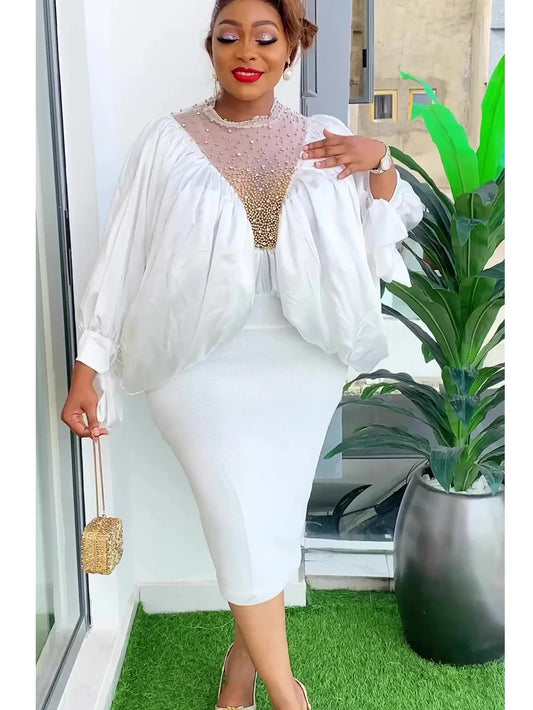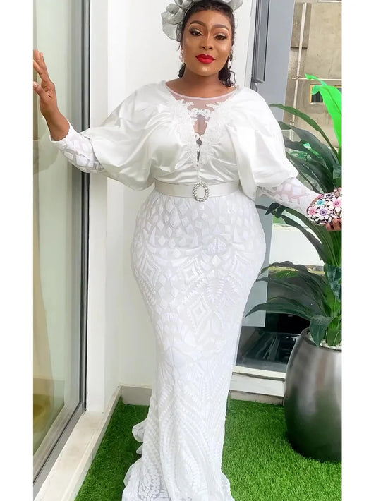 Satin Loose Long Sleeve African Bodycon Dress for women