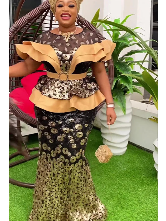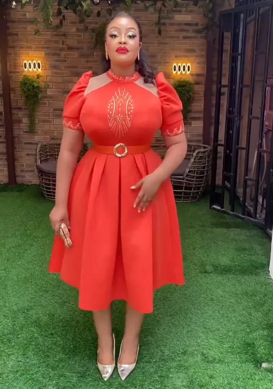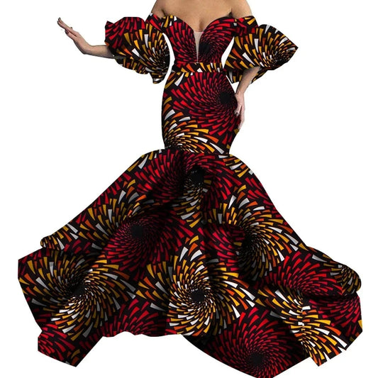Fashionable Off Shoulder Pufff Sleeve African Bodycon Dress