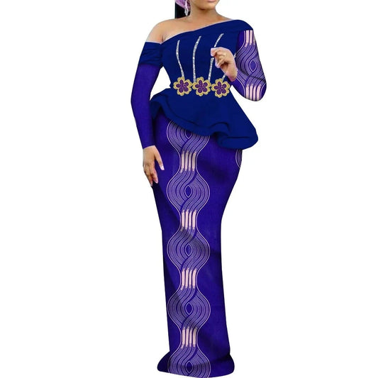 One Shoulder Long Sleeve Dashiki Print Peplum African Dress