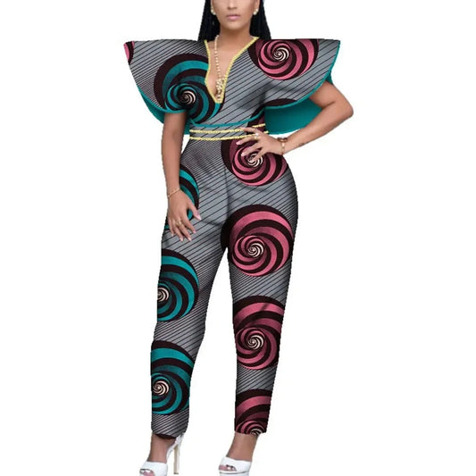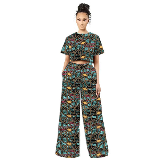 Original Design African Two Piece Set Retro Style Women Mini Top Wide Leg Pants for Ladies' Trendy Attire Made To Measure