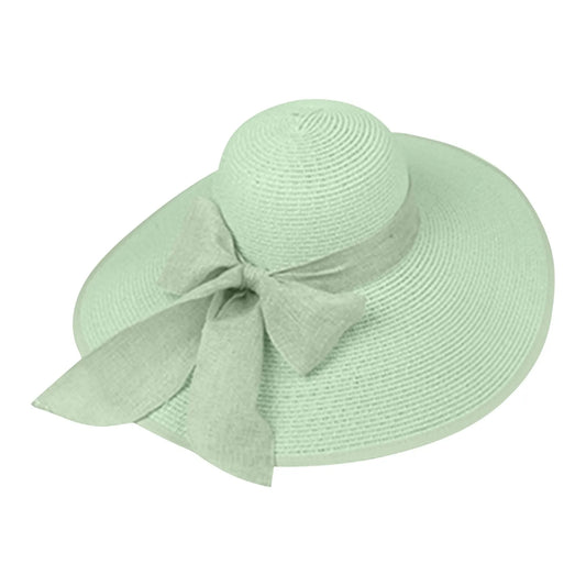 New Summer Women Straw Hat Bowknot Wide Brim Floppy Foldable Panama Hats Adult Outdoor Sun Protection Flat Top Ribbon Beach Cap