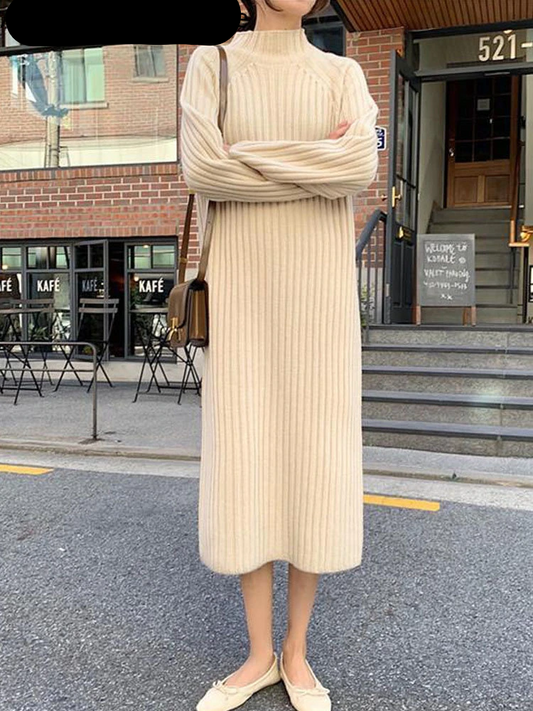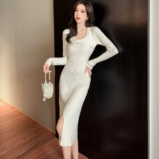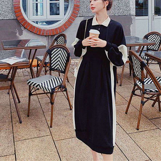 French Vintage Long Knitted Dress for Women