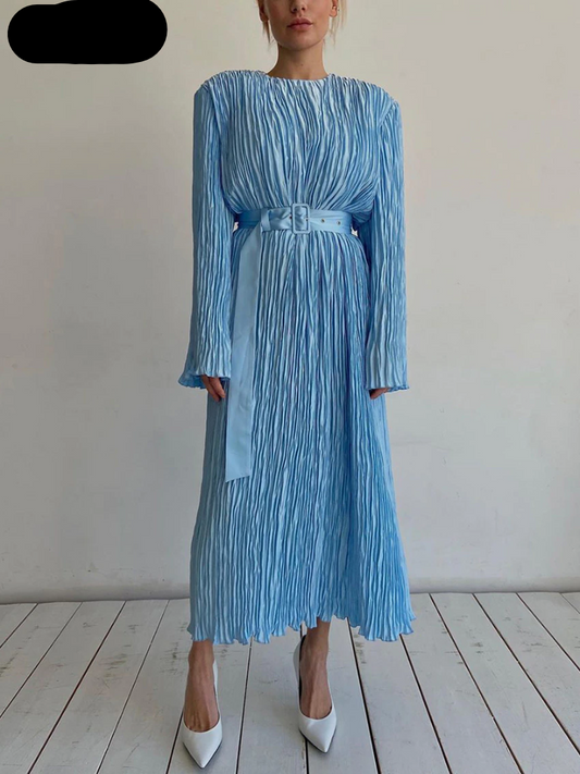 Long Sleeve Casual Loose Blue Midi Dress