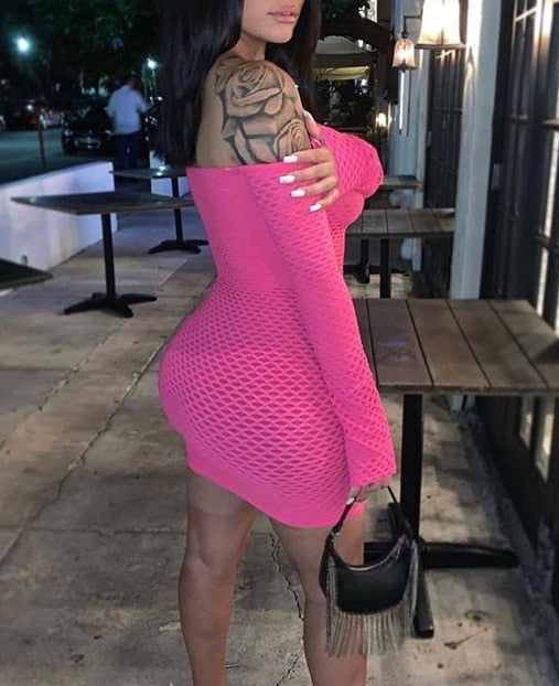 Off Shoulder Dress Mesh Bodycon Mini Dress