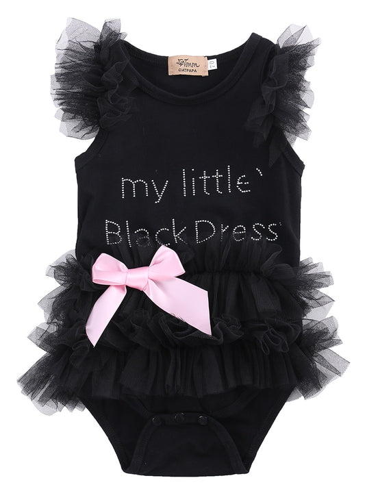 Pudcoco US Stock Hot Newborn Baby Girls Bodysuits Fashion Embroidered Lace My Little Black Dress Letter infant Baby Bodysuit