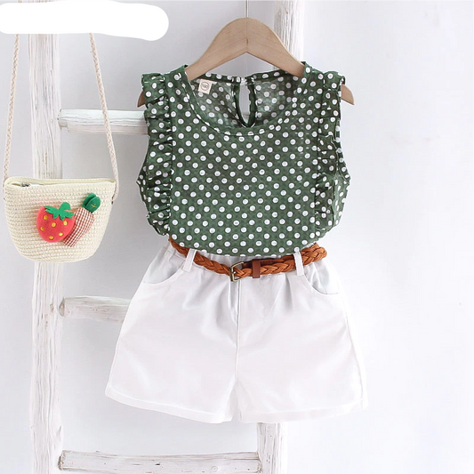 Short Sleeve Shirt Short Skirt 2 Piece Suits Cartoon Girl Bow Cotton sets