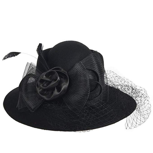 Wide Brim Wool Felt Hat Cocktail Party Wedding Fedora Hats Dress Church Hat Plumy Felt Floppy Winter Hat