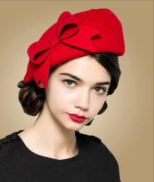 Wool Fascinators Fedora Women Red Church Hats White Black Wedding Ladies Hat Felt Bow Berets Caps Pillbox Hat