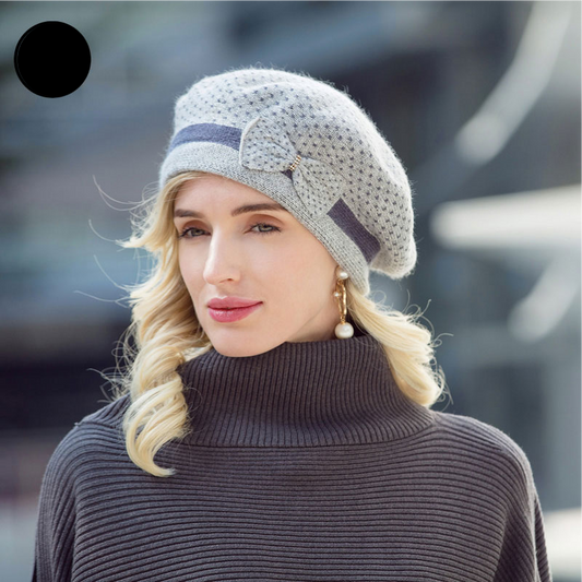 French Beret Hat For Women Warm Wool Hats Winter Beanie Caps Vintage Bowknot Black Beret Hats