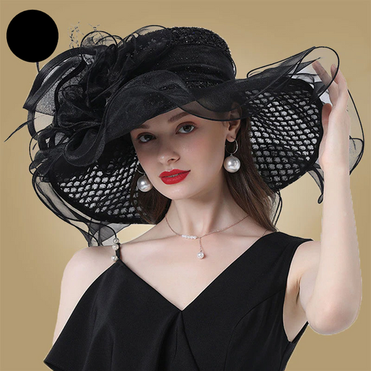 Women Summer Hat Black Dot Pattern Ruffle Wide Brim Ladies Organza Hat