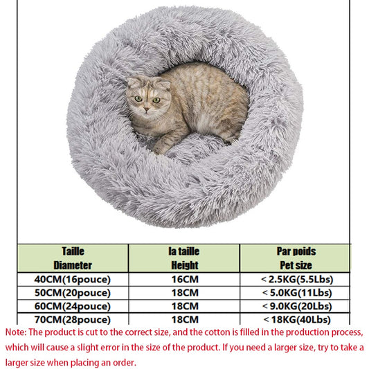 Super Soft Pet Cat Bed Plush Full Size Washable Calm Bed Donut Bed