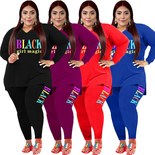 Long Sleeve Pants Suits 2 Piece Outfits - Plus Size Sets