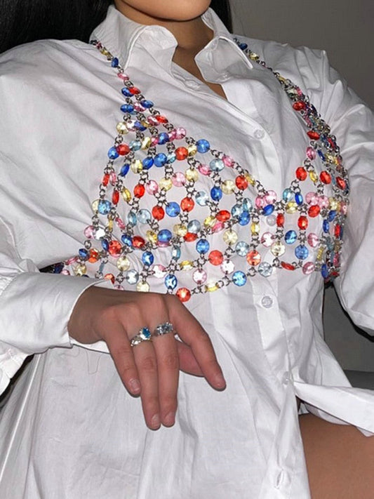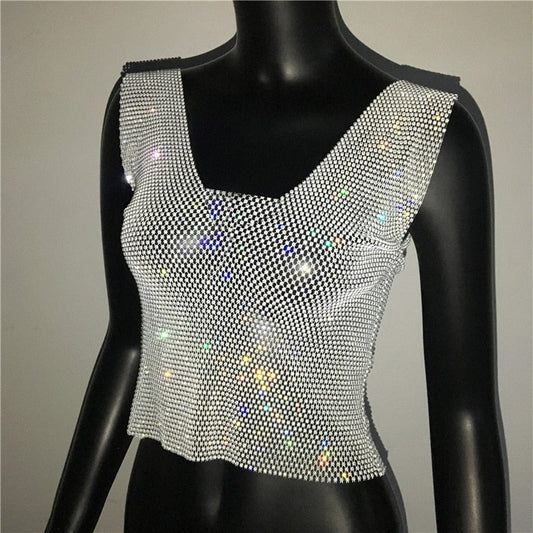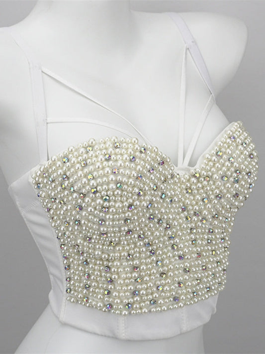 Tank Top Sleeveless Backless Feather Pearl Vest