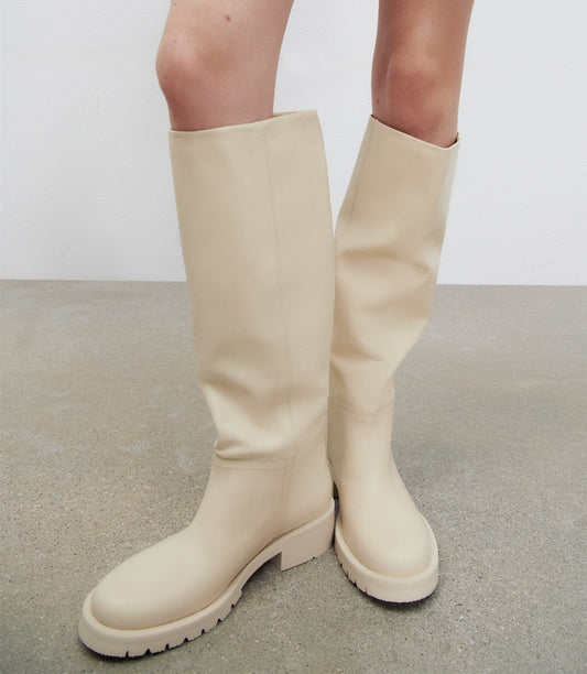 Women Knee High Boots Genuine Leather High Heeled Boots