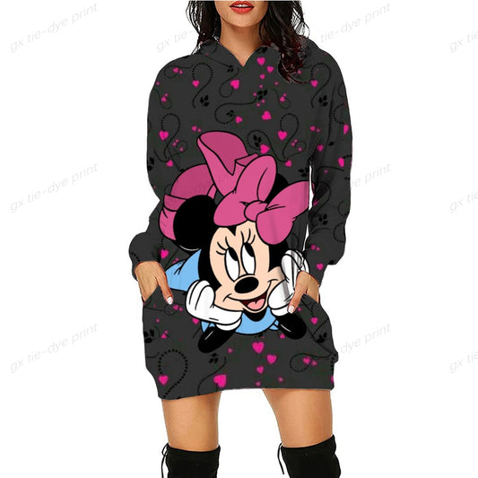 Aesthetic Printing Long Sleeve Hoodies Dress For Women
