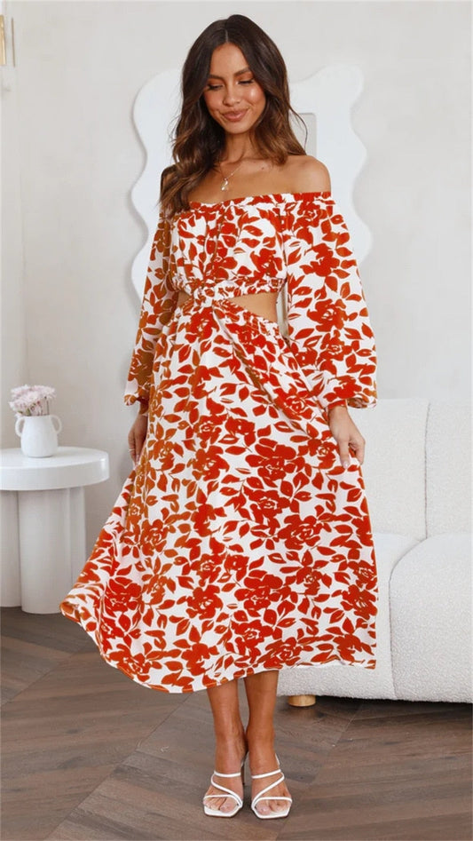 New Spring Summer Print Off the waist Slim Holiday Dress