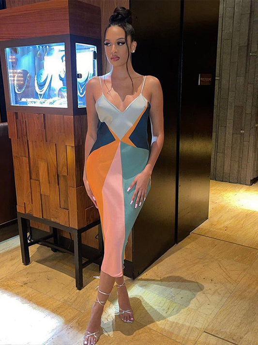 Satin Dress Sexy Sleeveless Print Contrast Spring dress