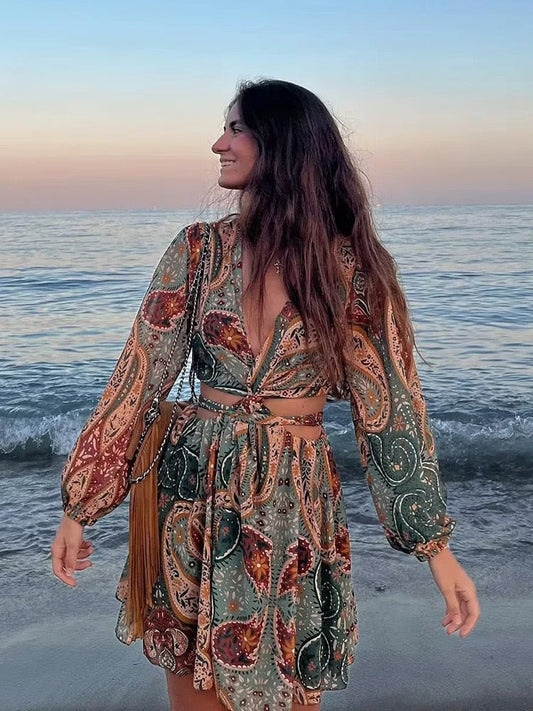 High Waist Bikini Swimsuit Vintage Prints Bikini Set