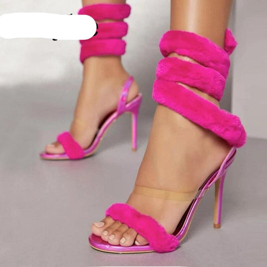 Outdoor Rhinestone Pointed Thick Heel High Heel Sandals