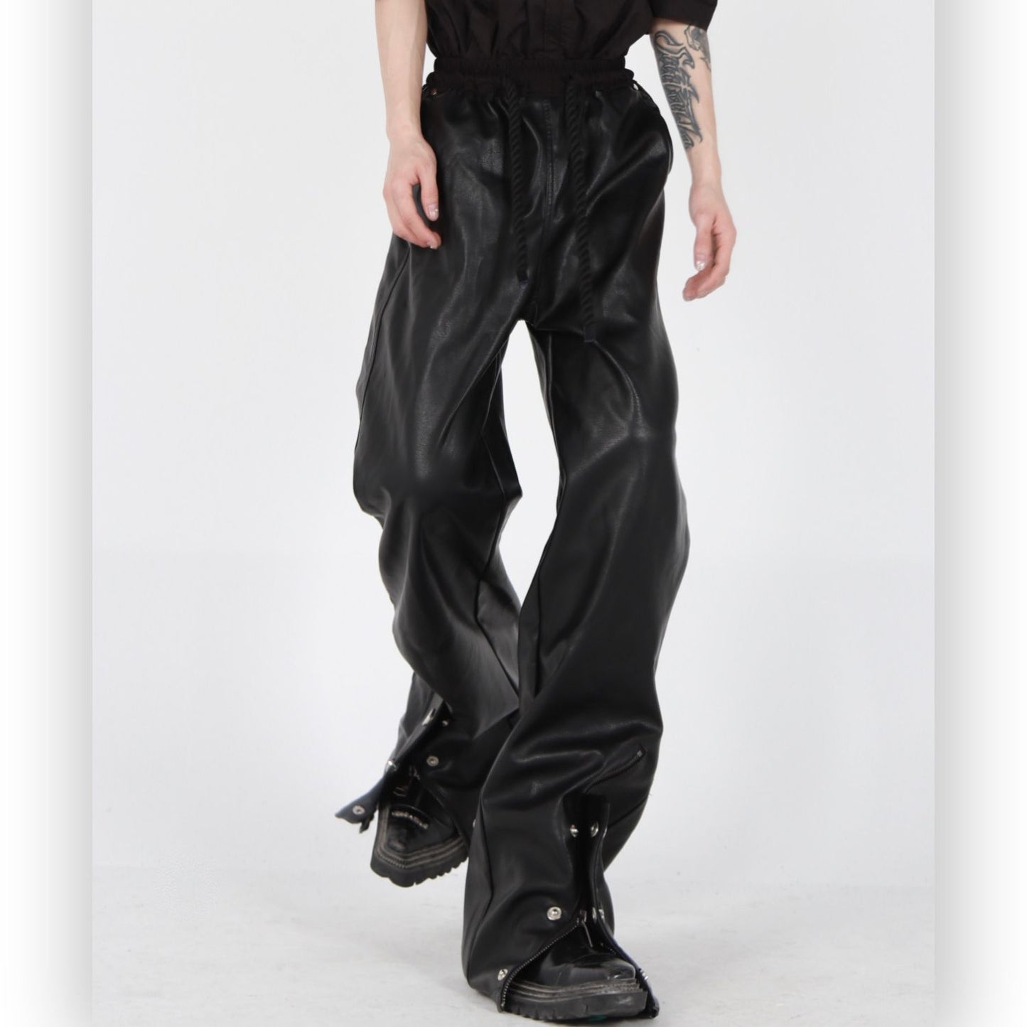 * Feature: Wide Leg, Drawstring Elastic Waist, Flared Zipper Bottom