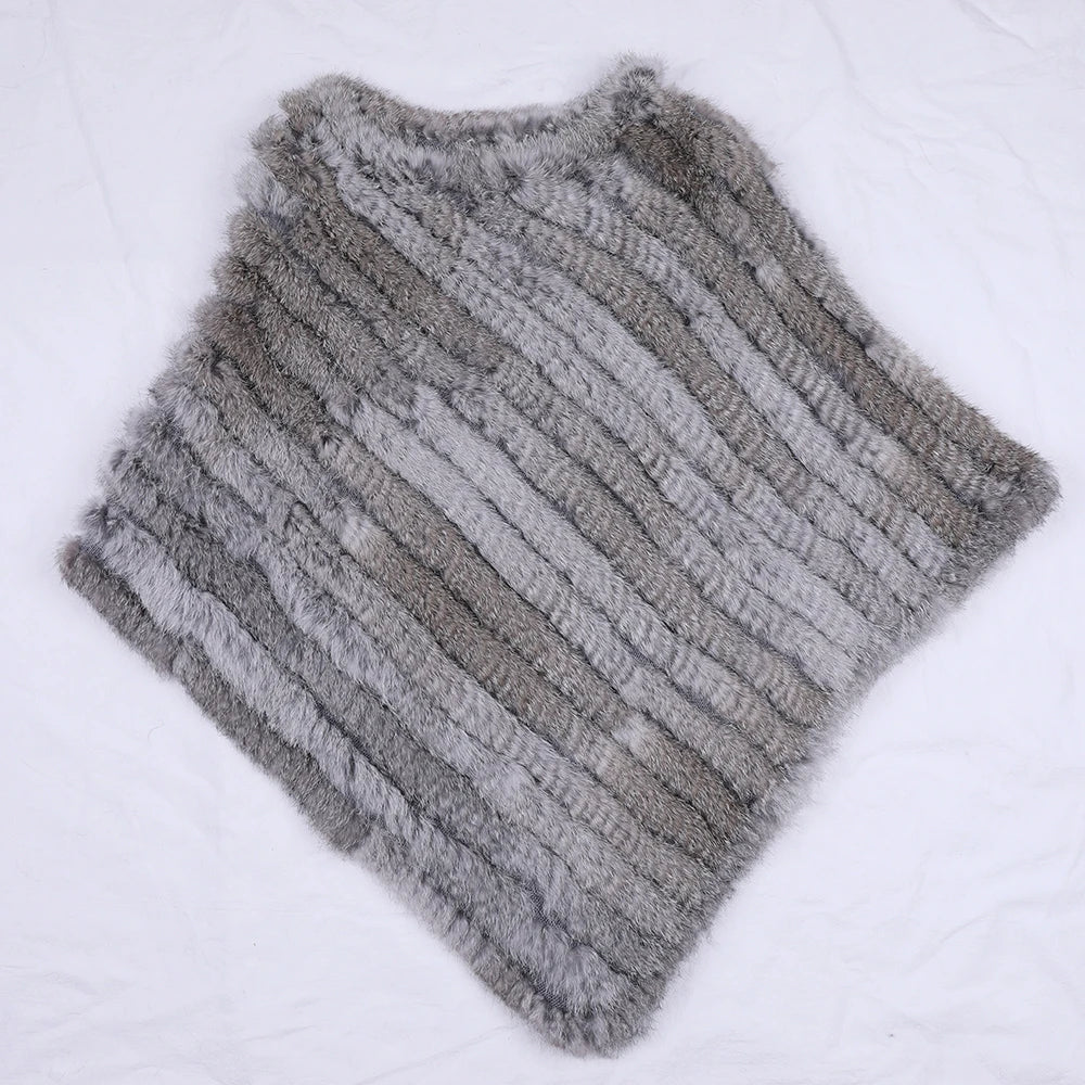 Genuine Rabbit Fur Knitted Natural Fur Poncho Fashion Wrap Coat Shawl Lady Scarf for Women