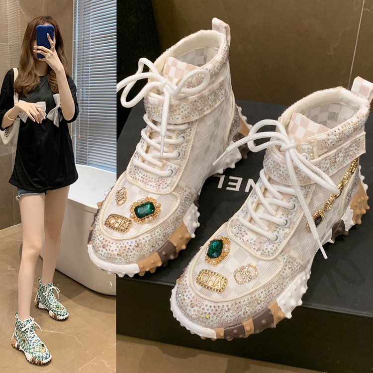 Hip-hop Rhinestone Women Sneakser Ins Tide Diamond Breathable Luxury Designers Casual Thick Bottoms Dad Boots