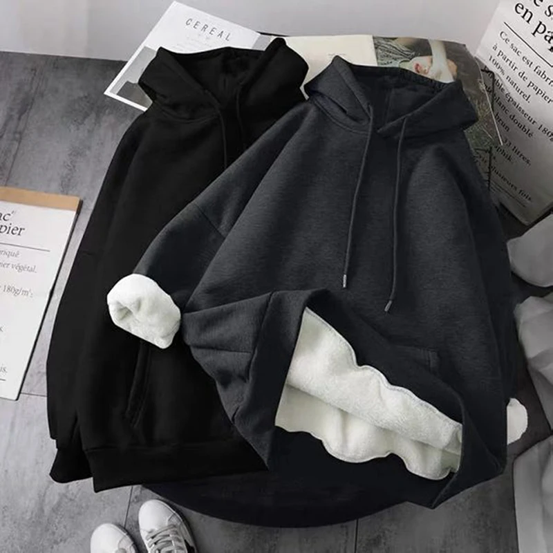 Hooded Sweatshirt Unisex Oversized Hoodie Autumn Winter Long Sleeved Pullover Lazy Style Loose Hooded Top Solid Couple Clothes