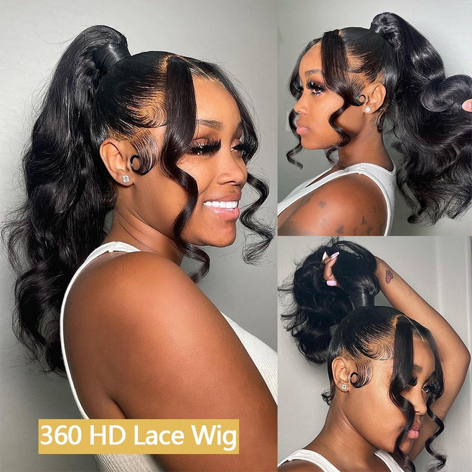 Human Hair Wigs For Black Women Brazilian Hair Pre Plucked Wet And Wavy Body Wave Lace Front Wig