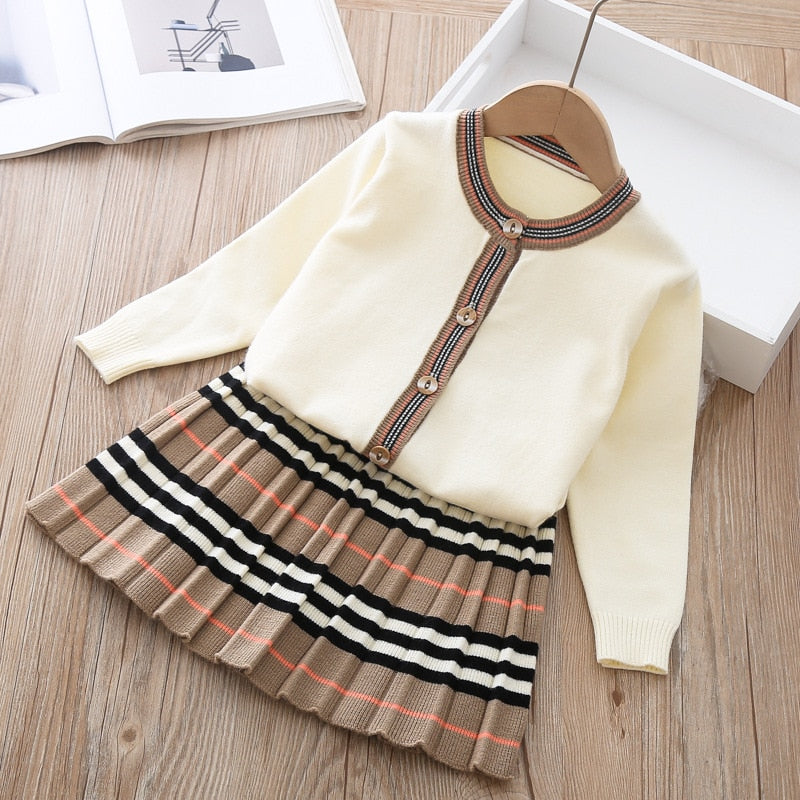 Knitted 2 Pieces Sets Sweater Coat+skirt Girls Boutique Outfits