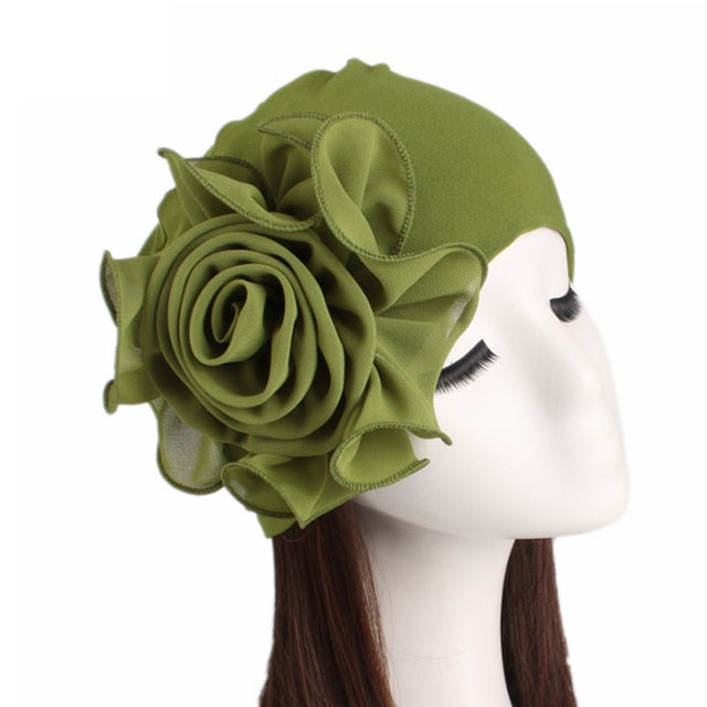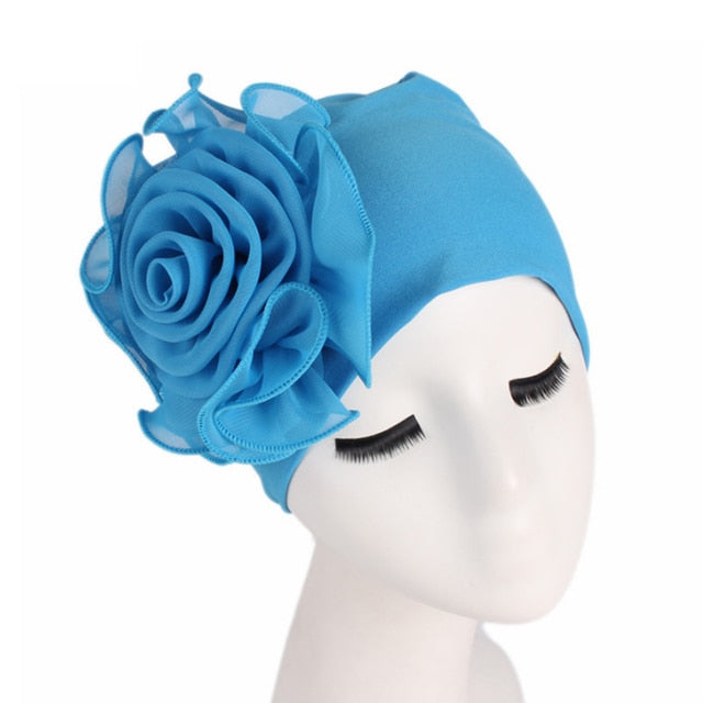 Large Flower Stretch Scarf Hat Ladies Elegant Fashion Hair Accessories Chemo Hat Women Turban Bandanas