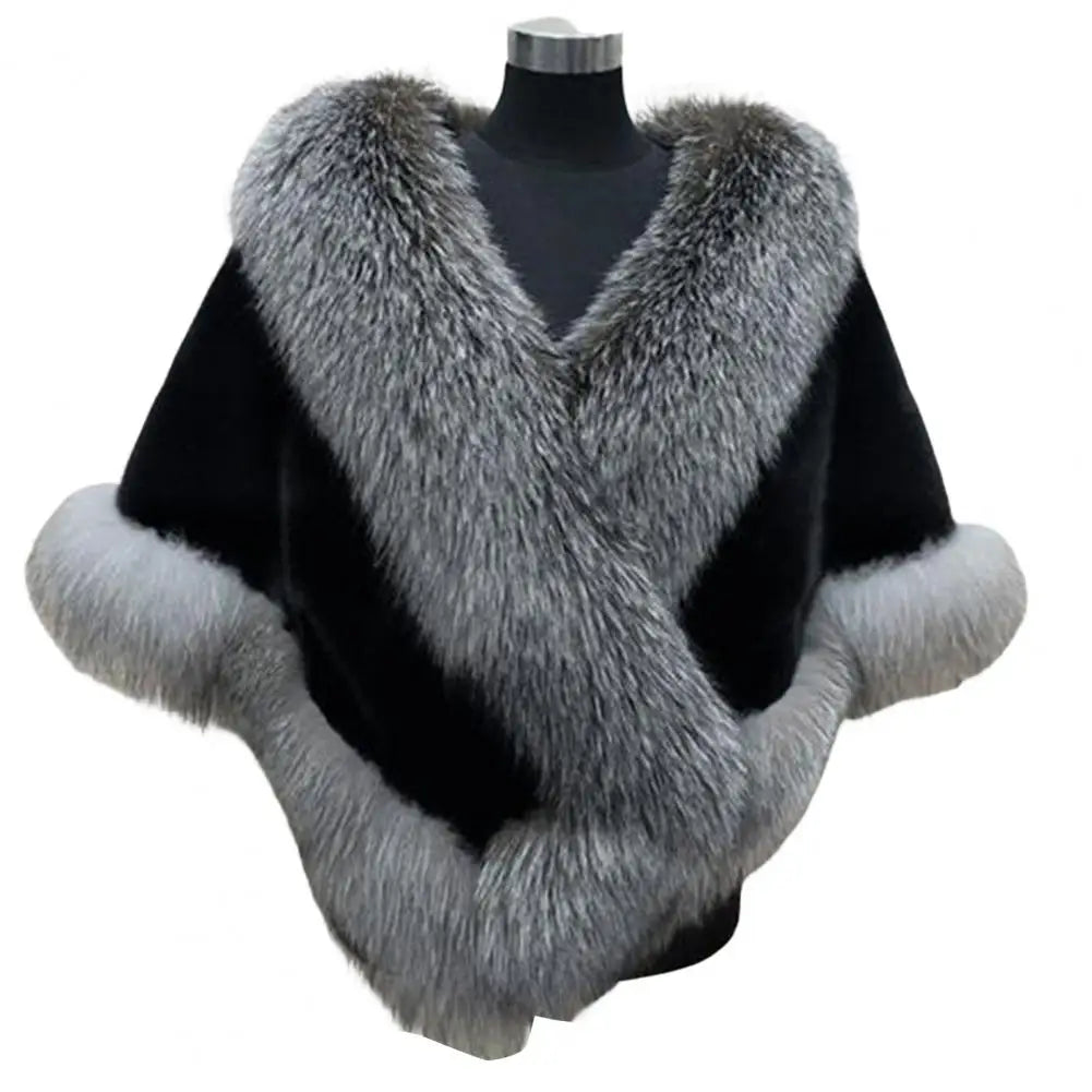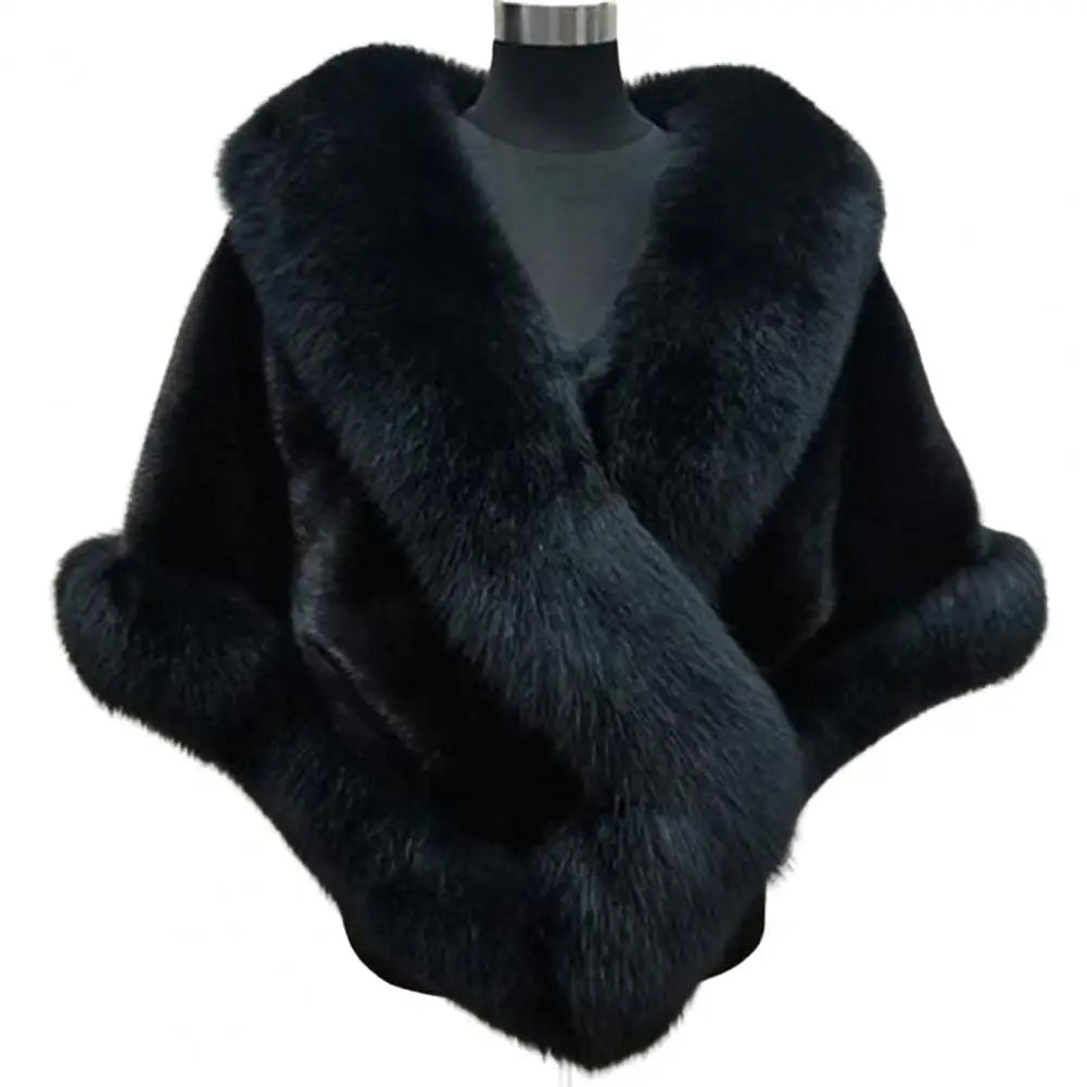 Luxury Fur Poncho Fluffy Shawl Wedding Banquet Dress Plush Cape Coat for Women