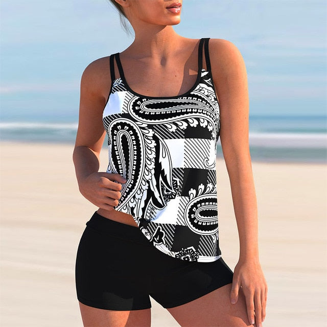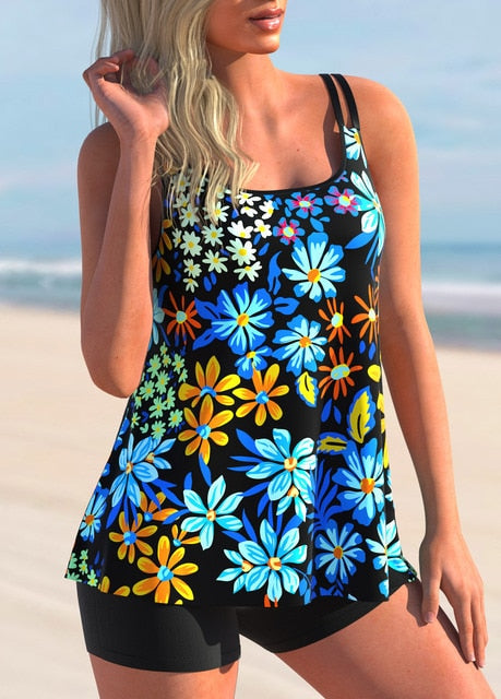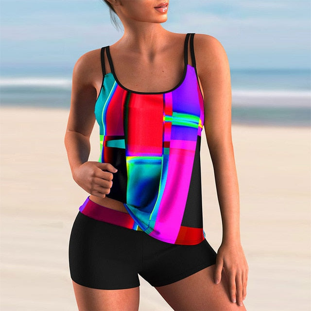 Printed Tankini Swimwear Sports Bathing Suit Beachwear-Two-piece Set