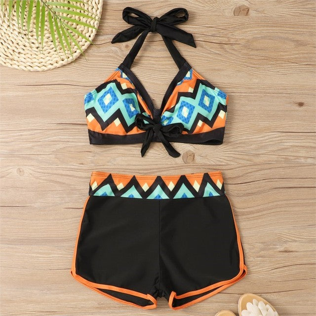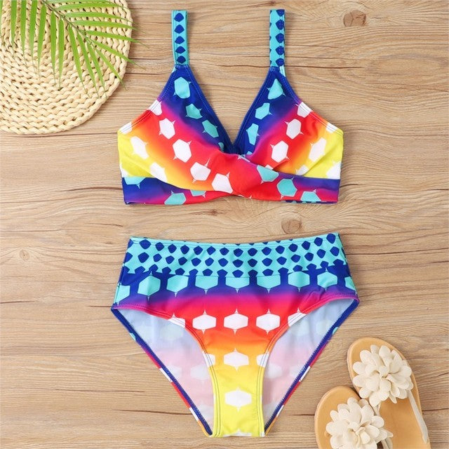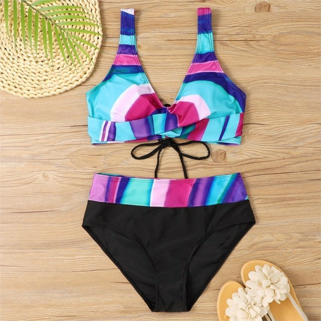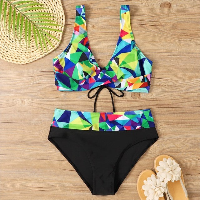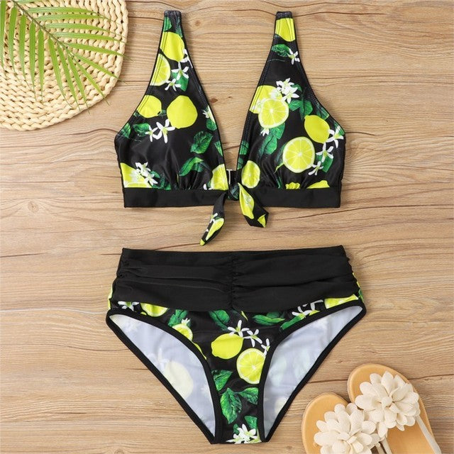 Printed Push Up High Waist Mayo Biquine - Beachwear