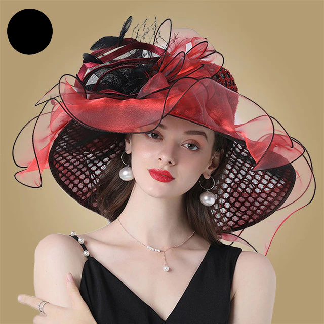 FS Women Organza Red Hats Wedding Fascinators Elegant Big Wide Brim Fedora Kentucky Derby Hats Party Formal Church Ladies Hat