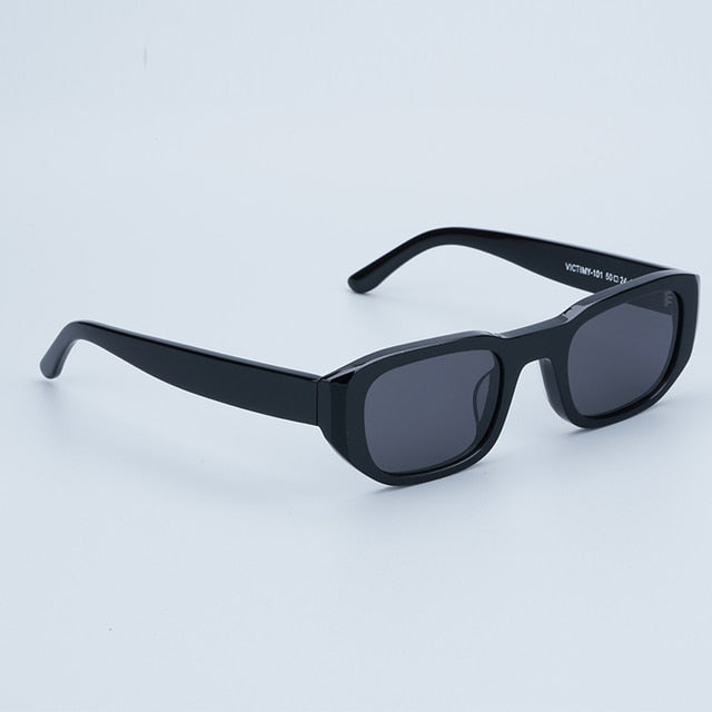 Premium acetate sunglasses handmade in Japan. Offered in a classic black frame with grey-tinted lenses, featuring UV