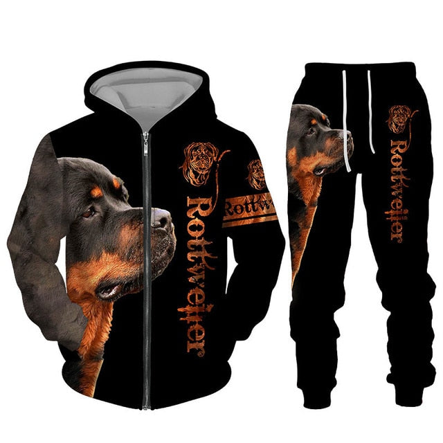 Rottweiler Dog 3d Printed Hoodie Suit Male Autumn Winter Casual Sweashirts Sweatpants Men Tracksuit Set