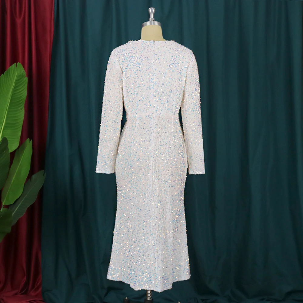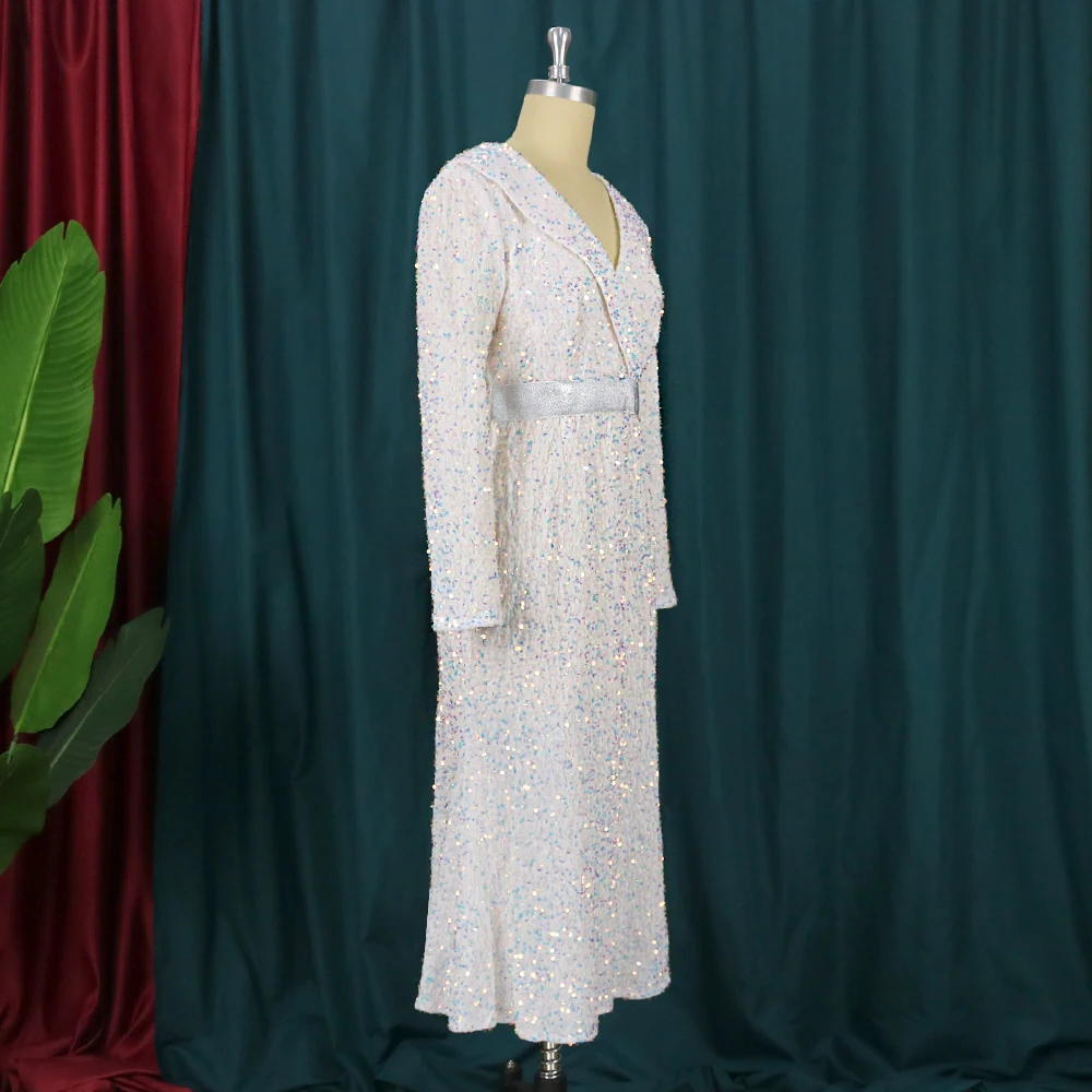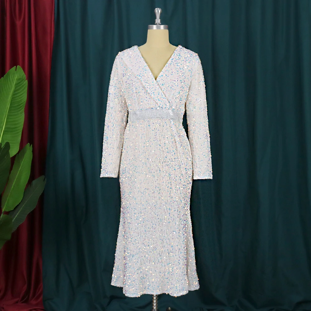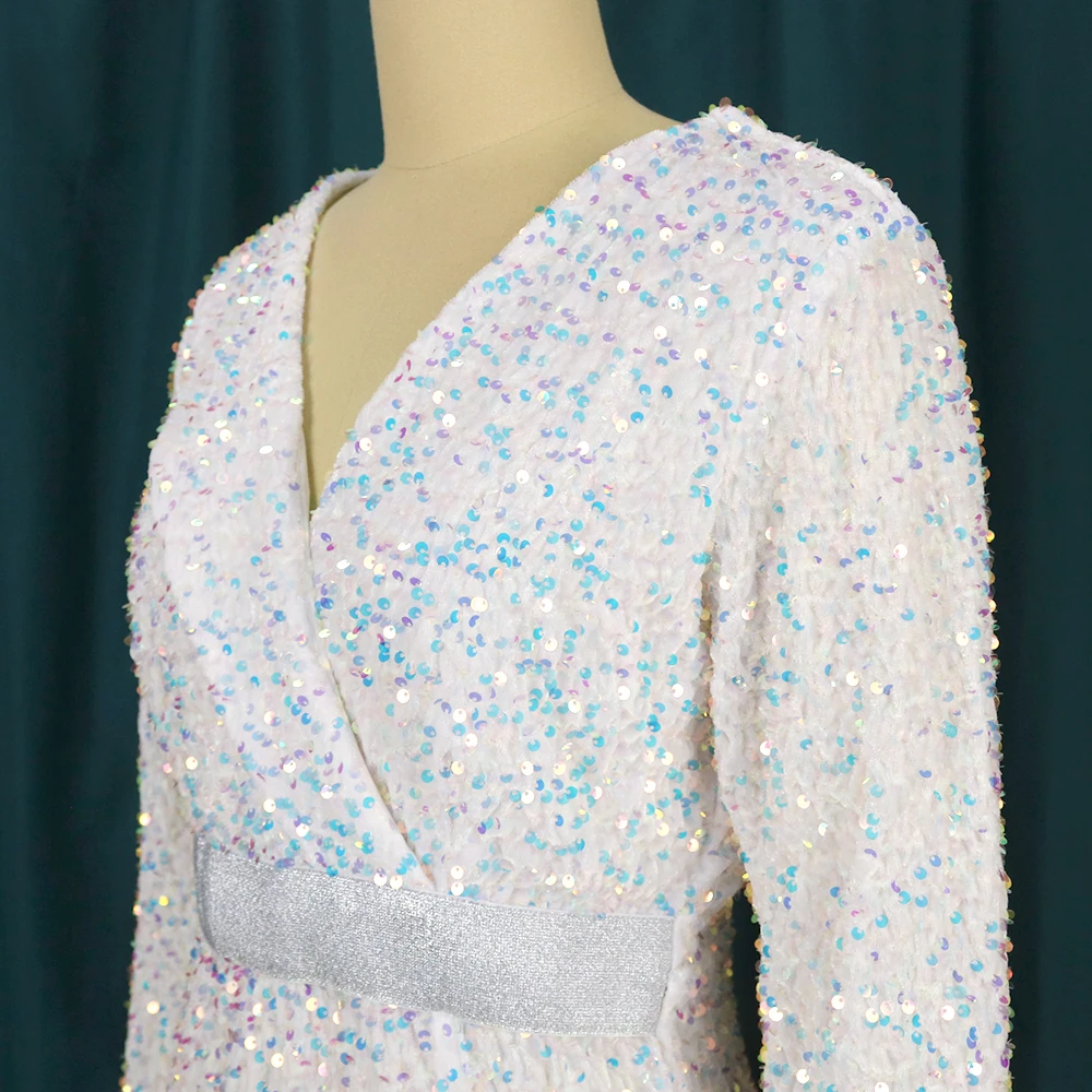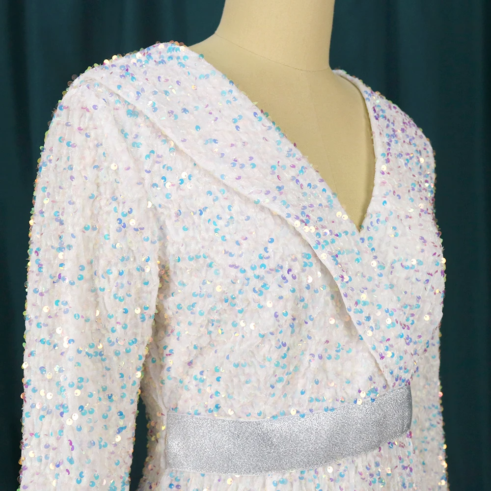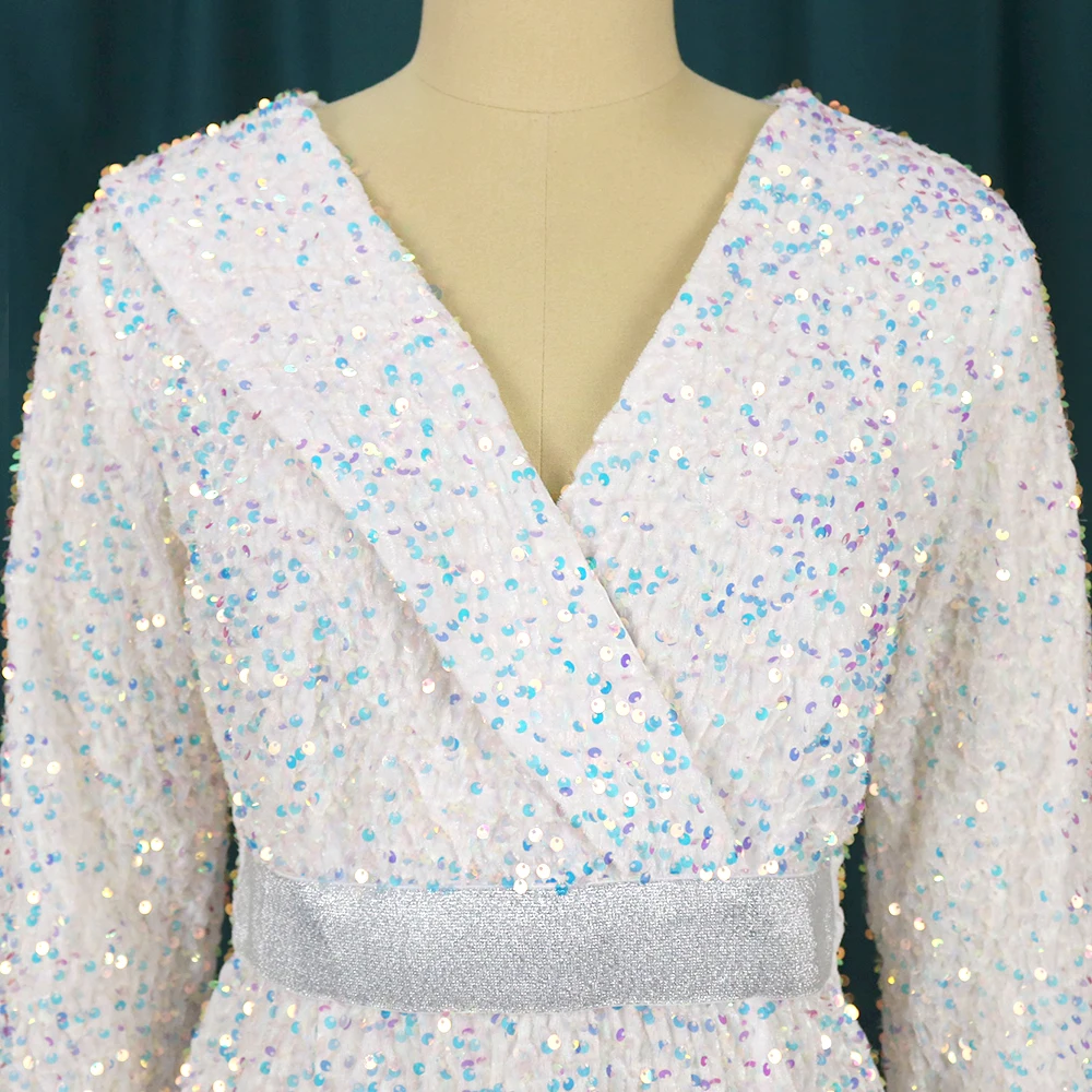 Sexy Large Size Sequin Dress Sparkly Glitter Velvet Midi Bodycon Dress