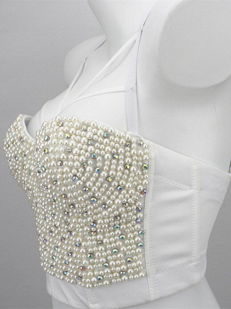 Tank Top V neck Sleeveless Slim Pearl Vest