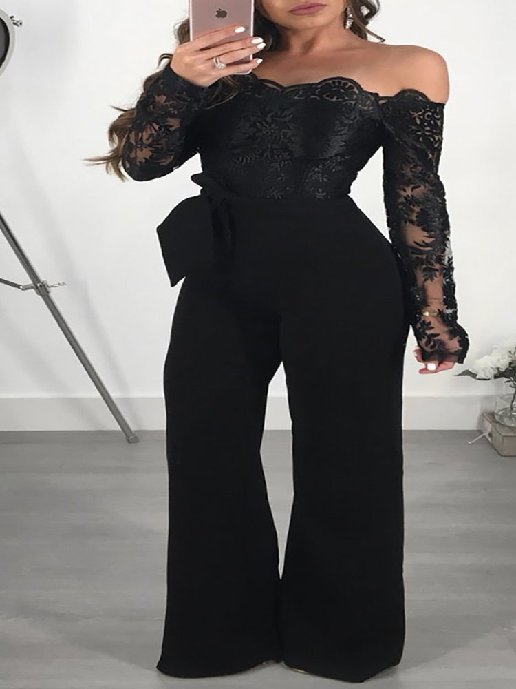 Wide Leg with V-neck Lace Elegant Jumpsuit